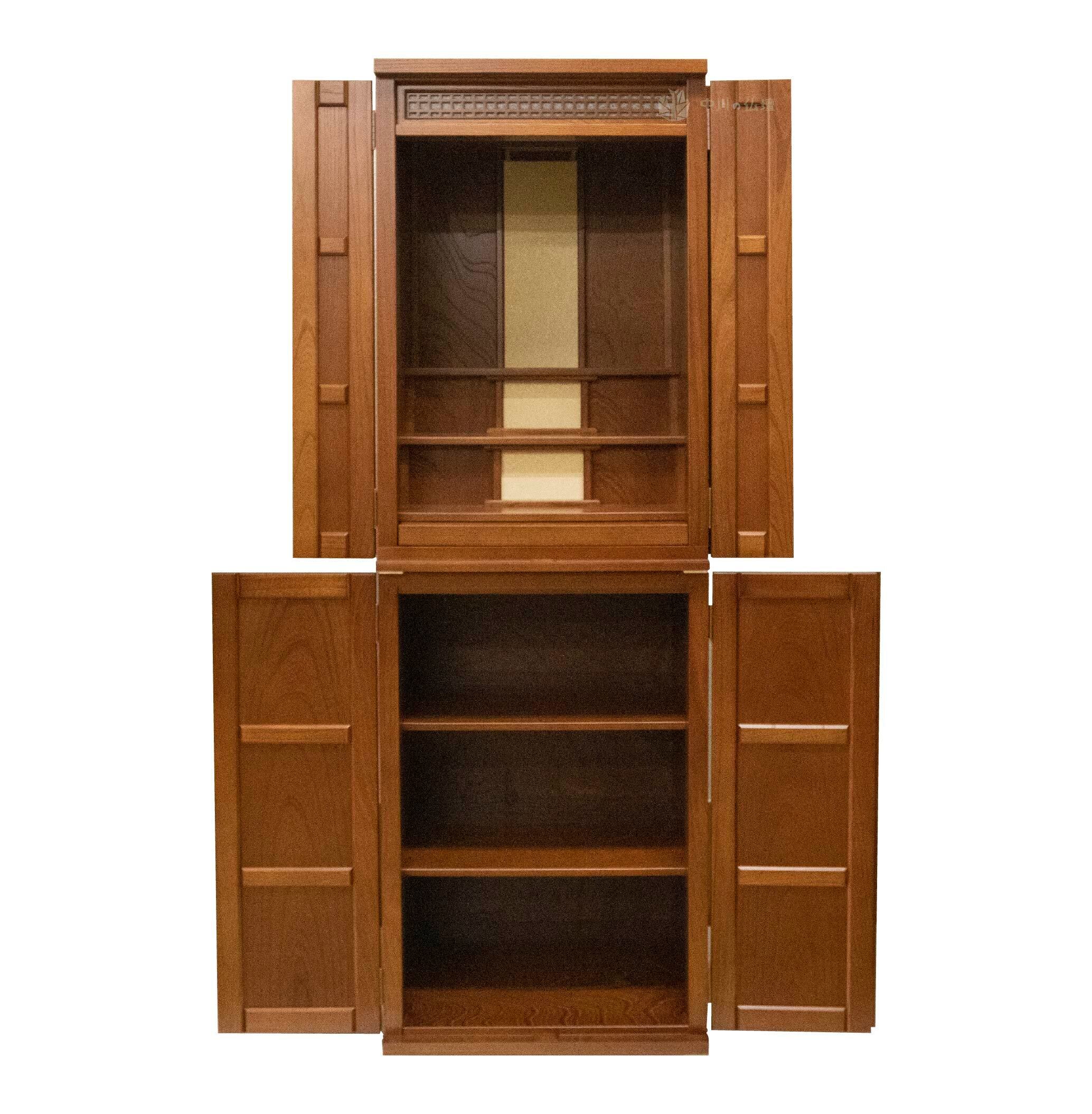 川明ⅡO欅16-50 欅のダイナミックな木の目が魅力の仏壇です。伝統的なデザインでありながら、モダンでおしゃれです。畳にもフローリングにも合います。 正面表面材:台輪・戸板 欅薄板貼り 大戸軸:欅無垢 夏目球照明付 表面仕上:ウレタン仕上 主芯材:ウレタン仕上げ 原産国:日本 サイズ:幅50㎝ 奥行45㎝ 高さ150㎝